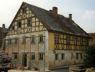 - Kostenlose Grundberatung, erster Kontakt, erstes Gespräch oder Objektbesichtigung - Beispiel 1Ornbau, Altstadt 26, vor der Instandsetzung 2002 Zum Bauwerk:Erbauungszeit 1750 mit baulichen Resten von 1398 Maßnahmen: Aufmasse, Substanzschonende Grundrissoptimierung, Umbauter Raum: ca. 1.100 cbm Neue Nutzung nach Instandsetzung: EG: Friseursalon und 1 WHG