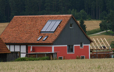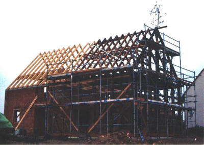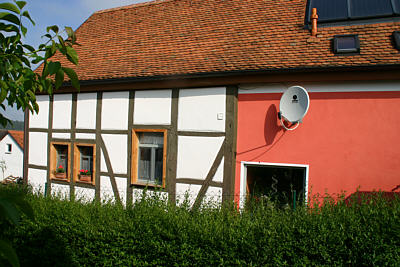 builder's treat the building was extended on the backside with a massive add-on a significant part of the interior work was performed by owner's personal contribution. nogging of the compartments and the wall behind it with claybricks, roofing of the building with historical flat-tale tiles