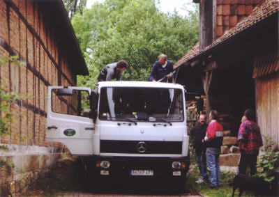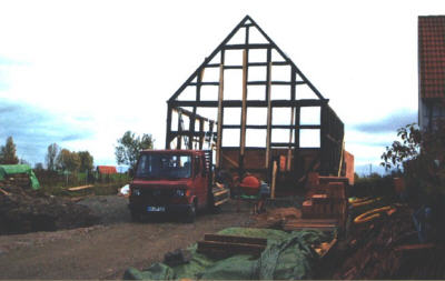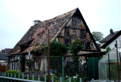 the backside some numbers regarding the building: enclosed space: about 917 cu.yd. another condemned house built in 1688 waiting for reconstruction some facts: most recent location of the building: Hanau-Steinheim, Kirchstr. 15