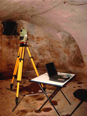 Aufmaß vor Ort mit Tachymeter und Laptop (hier: Gewölbekeller)